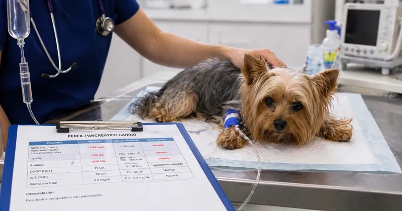 - Analítica sanguínea completa: puede mostrar elevación de lipasa y amilasa, aunque estos valores por sí solos no son concluyentes en perros